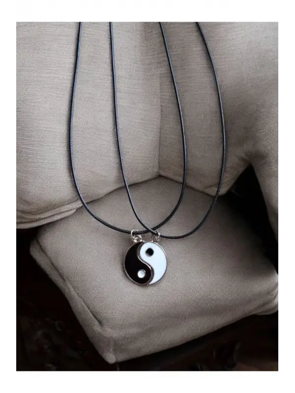 Unisex 2li Yin Yang Suni Deri İpli Kolye Arkadaşlık, Çift kolye, Sevgili Kolye