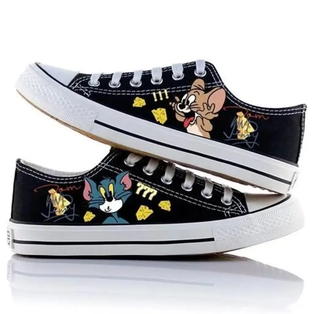 Touz Moda Özel Baskılı Siyah Kanvas Ayakkabı