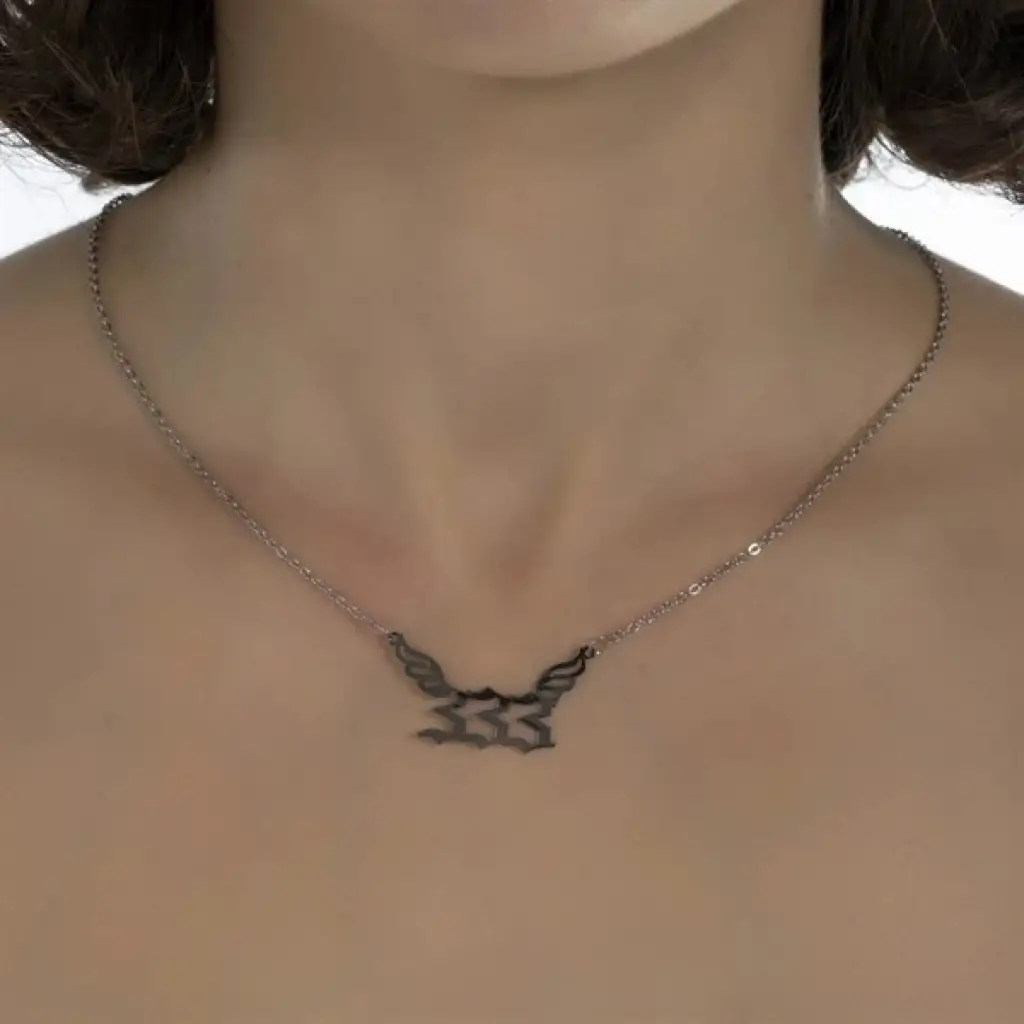 Gümüş Renk Zincirli Siyah Kalp Pençe İthal Kolye
