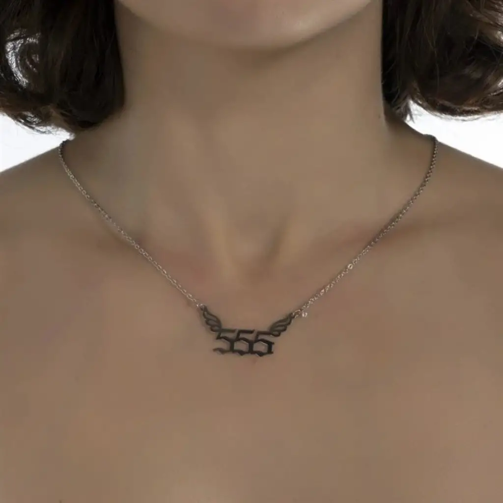 Gümüş Renk Zincirli Siyah Kalp Pençe İthal Kolye