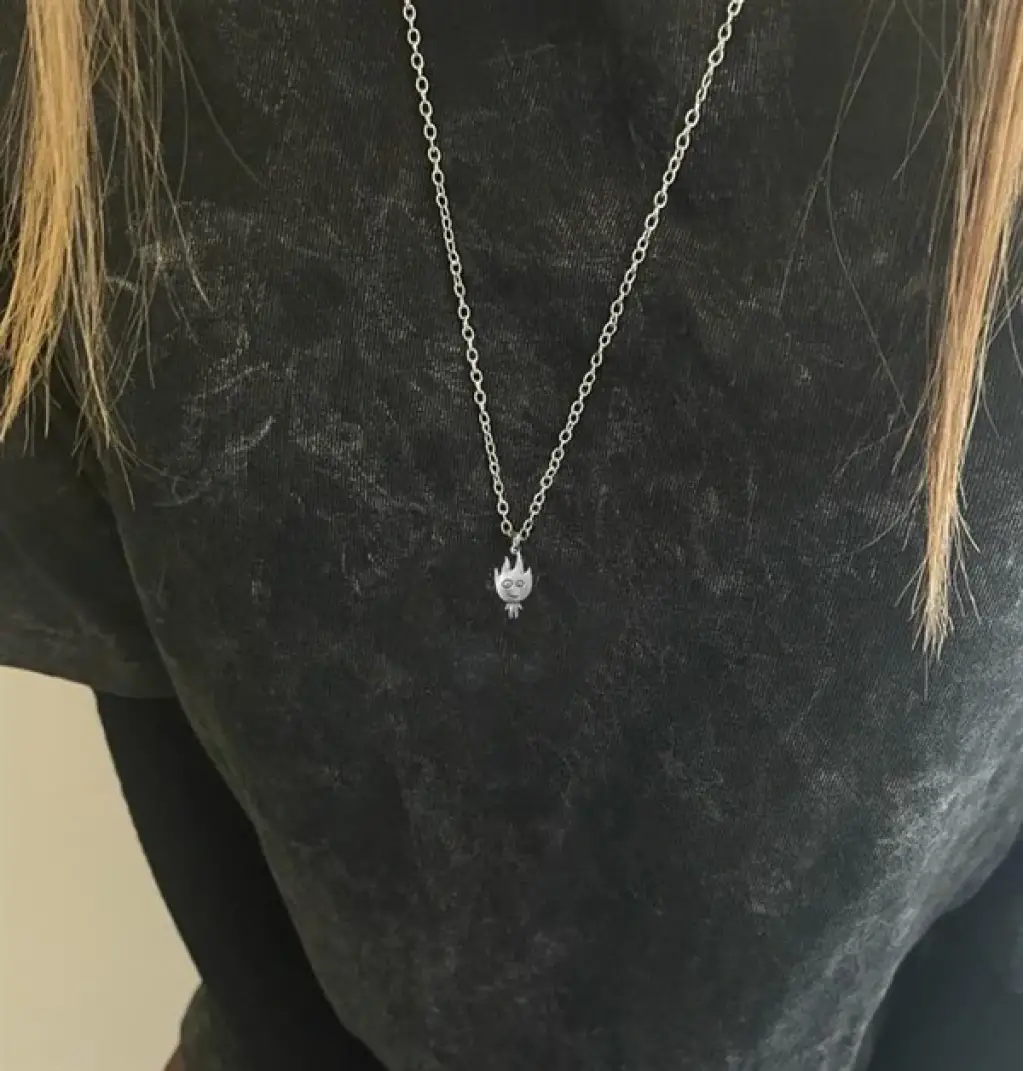 Gümüş Renk Zincirli İçi Dolu Fiyonk İthal Kolye