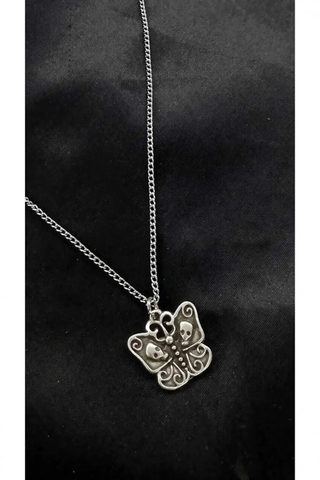 Gümüş Renk Zincirli Mor Taşlı Kelebek İthal Kolye
