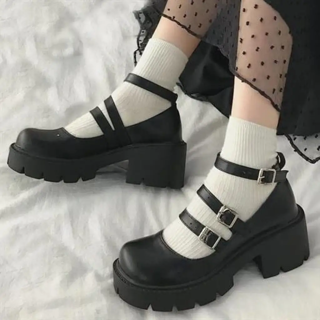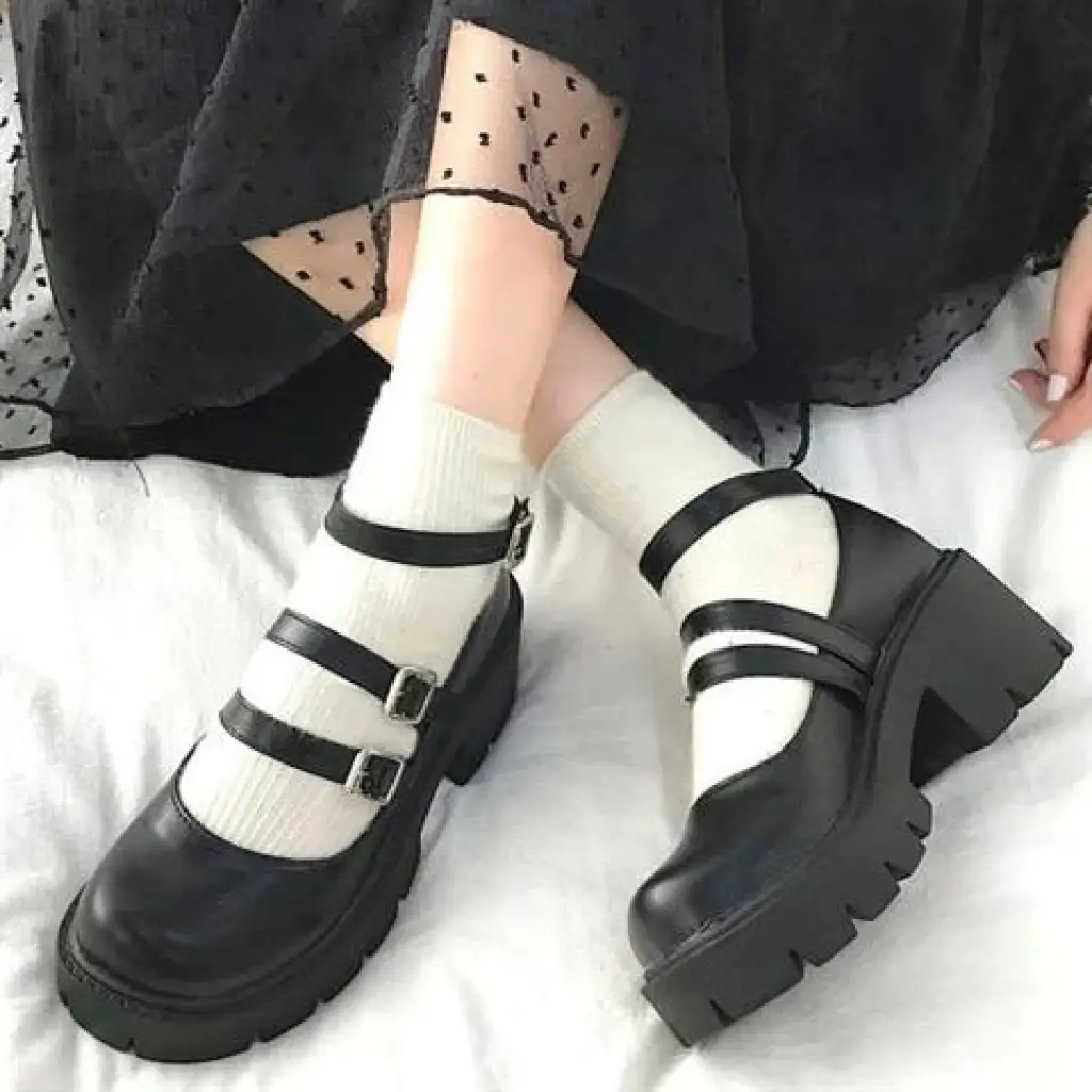 Siyah Oxford Yüksek Taban Lolita Ayakkabı