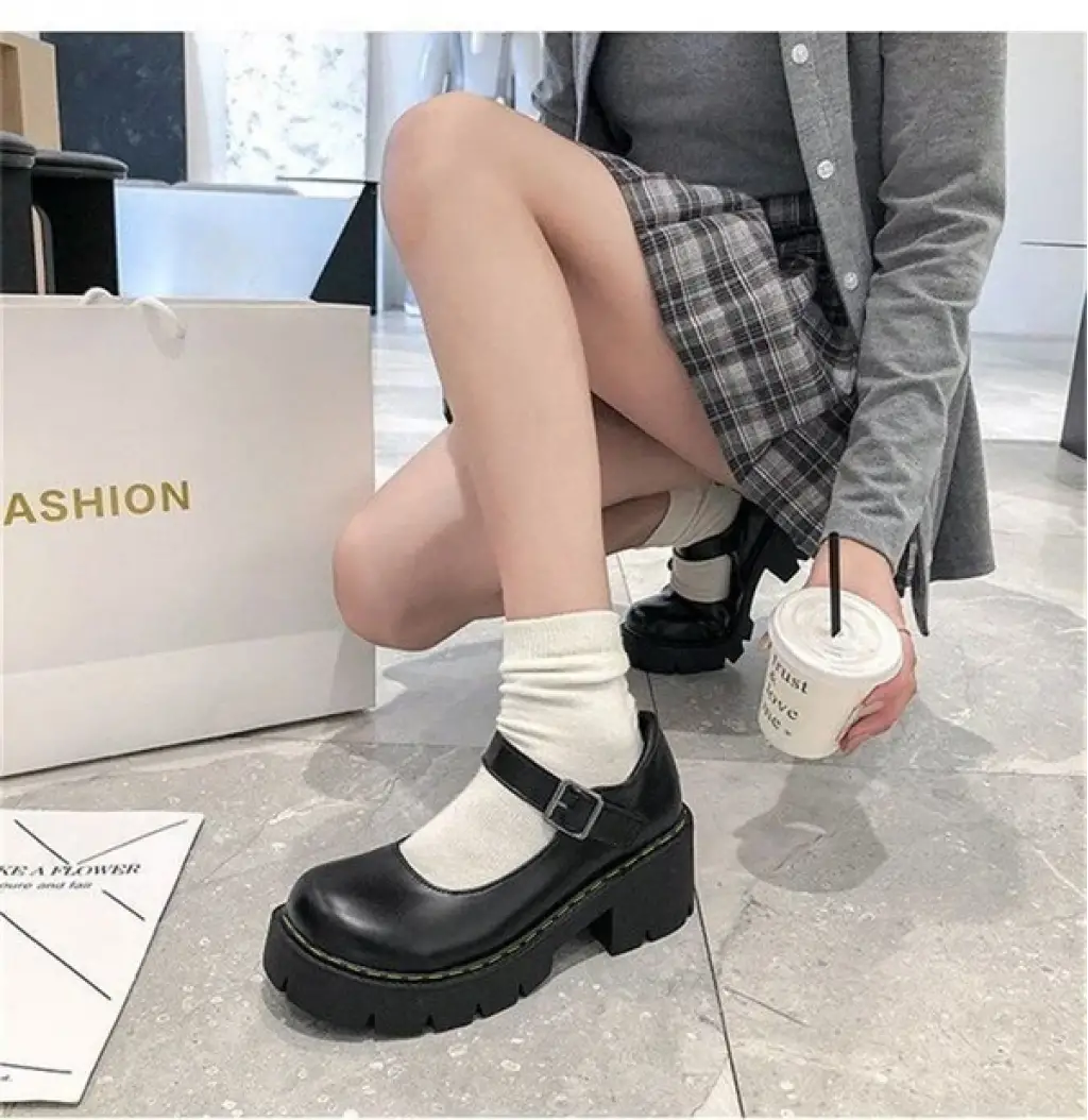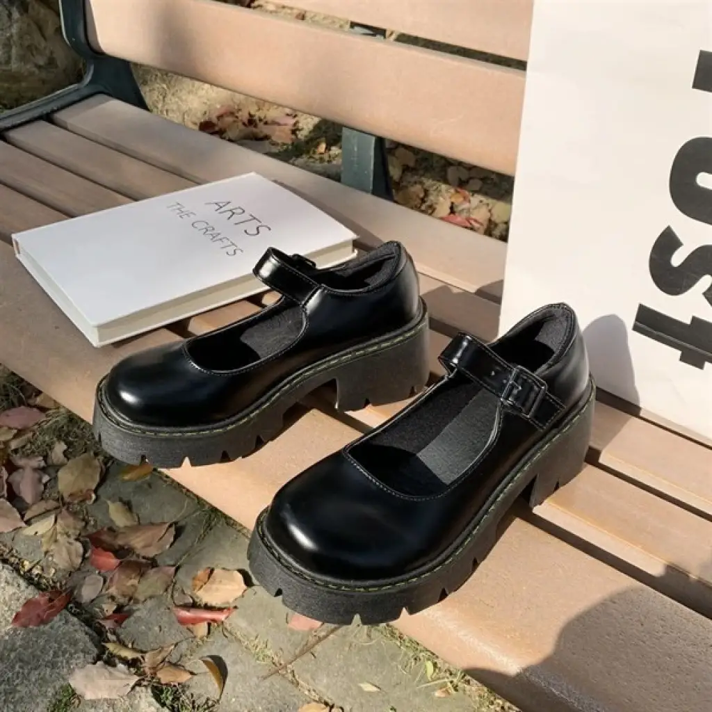 Touz Siyah Oxford Harajuku Tarz Bilek Toka Lolita Ayakkabı