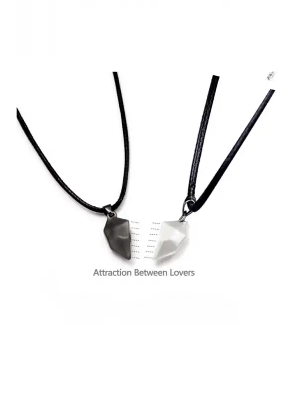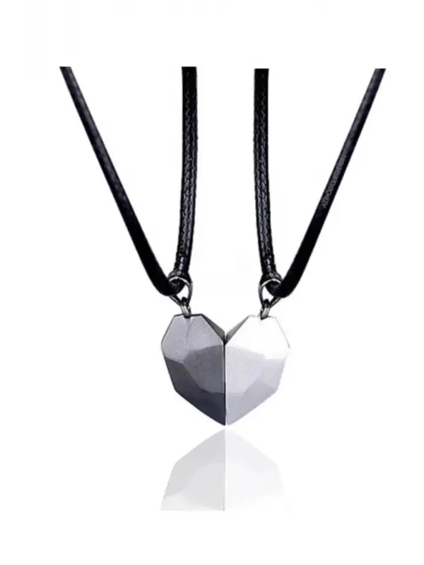 2'li Gri Siyah Iki Adet Mıknatıslı Çift Kalp Sevgili Metal Kolye Takı