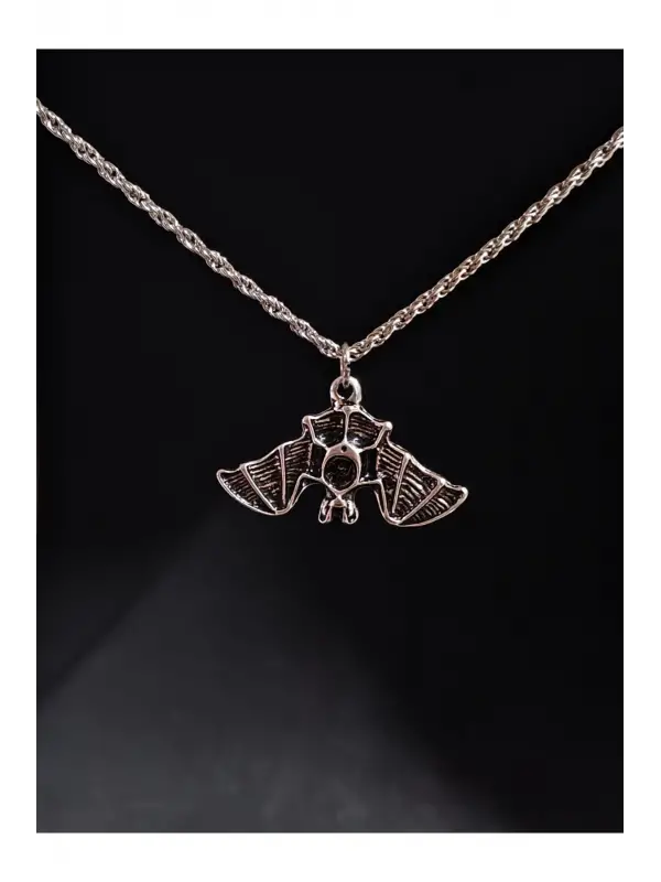 Antik Gümüş Kaplama Batman Sembol Yarasa Unisex Zincirli Kolye