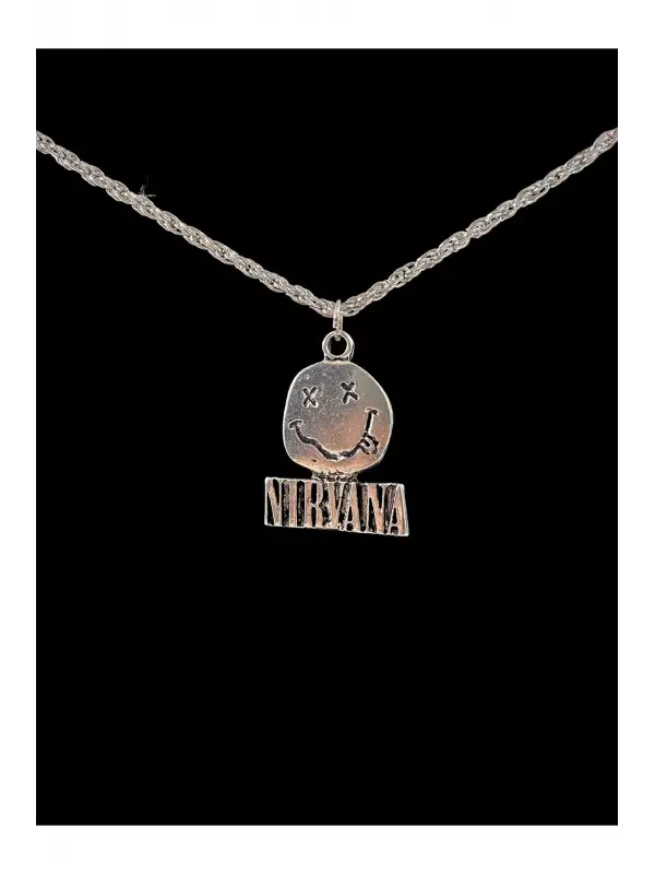 Antik Gümüş Kaplama Çelik Nirvana Rock Müzik Zincirli Kolye