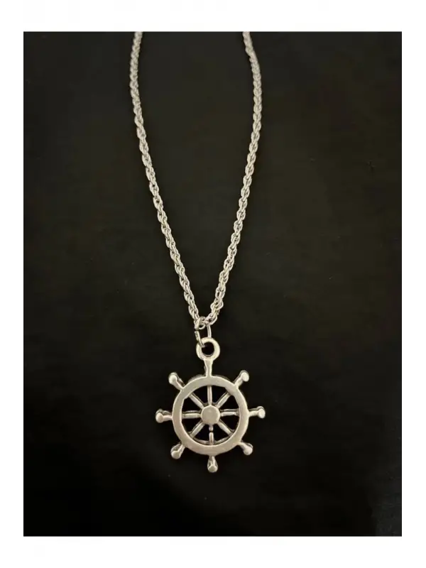 Antik Gümüş Kaplama Çelik Unisex Gri Ihtişamlı Gemi Dümeni Zincirli Kolye