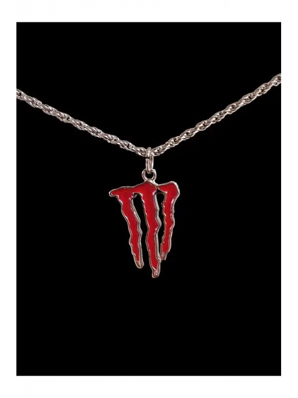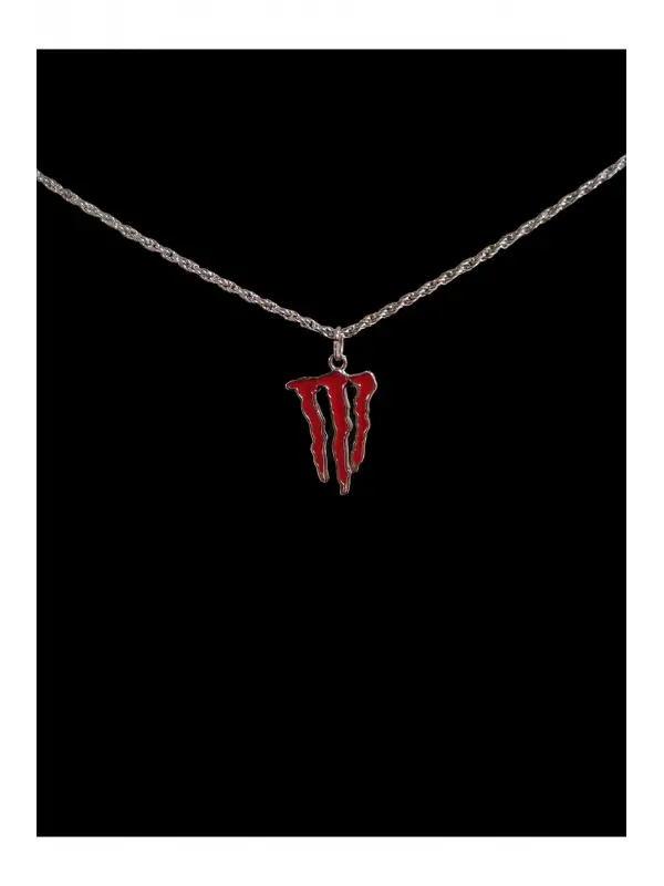 Antik Gümüş Kaplama Gotik Kırmızı Unisex Monster Sembol Zincirli Kolye