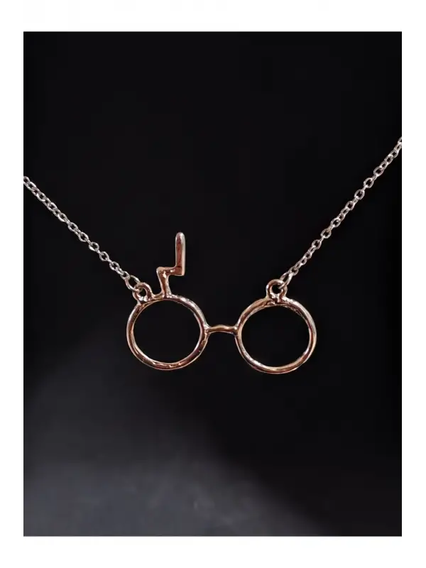 Antik Gümüş Kaplama Potter Sembol Gözlük Motif Unisex Zincirli Kolye