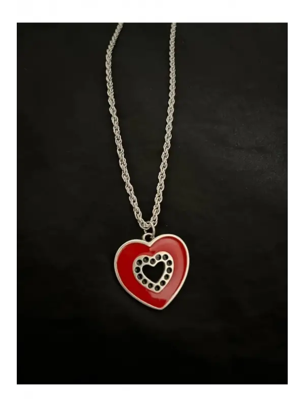 Antik Gümüş Kaplama Unisex Kalp Derinliği Zincirli Kolye