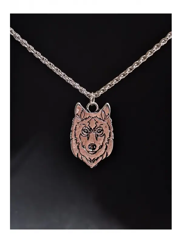 Antik Gümüş Kaplama Wolf Kurt Sembol Unisex Çelik Zincirli Kolye