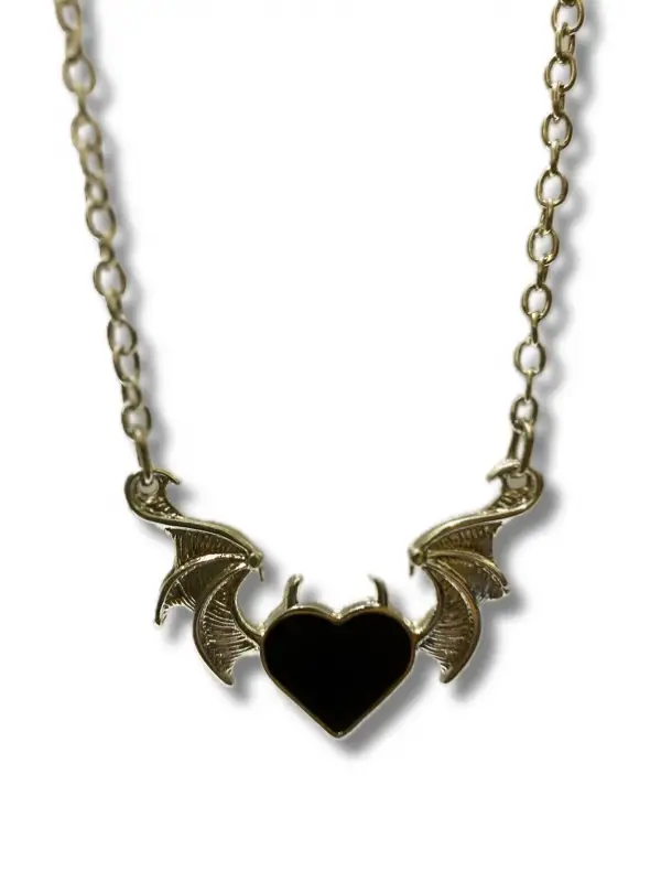 El Yapımı Antik Gotik Gümüş Kaplama Unisex Kalp Heart Decor Çift Kanat Unisex Zincirli Kolye