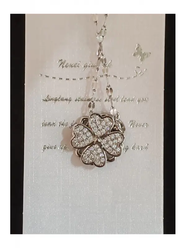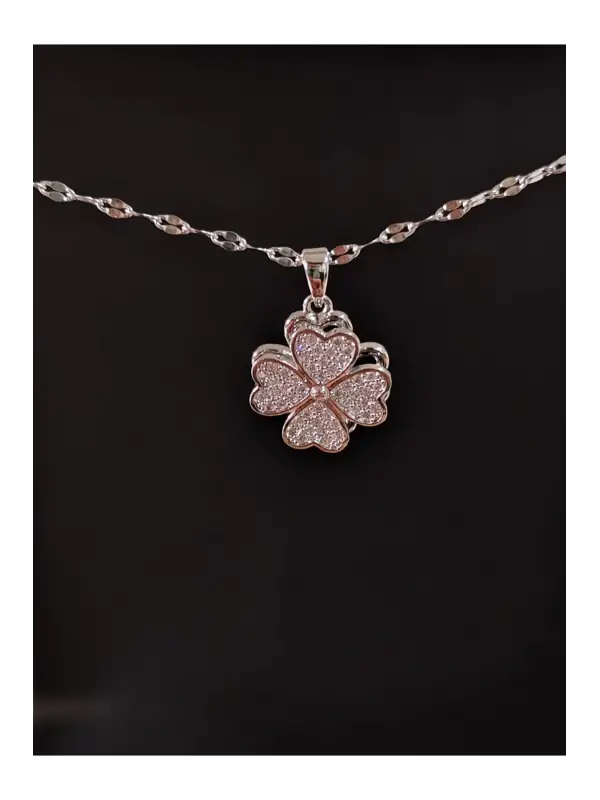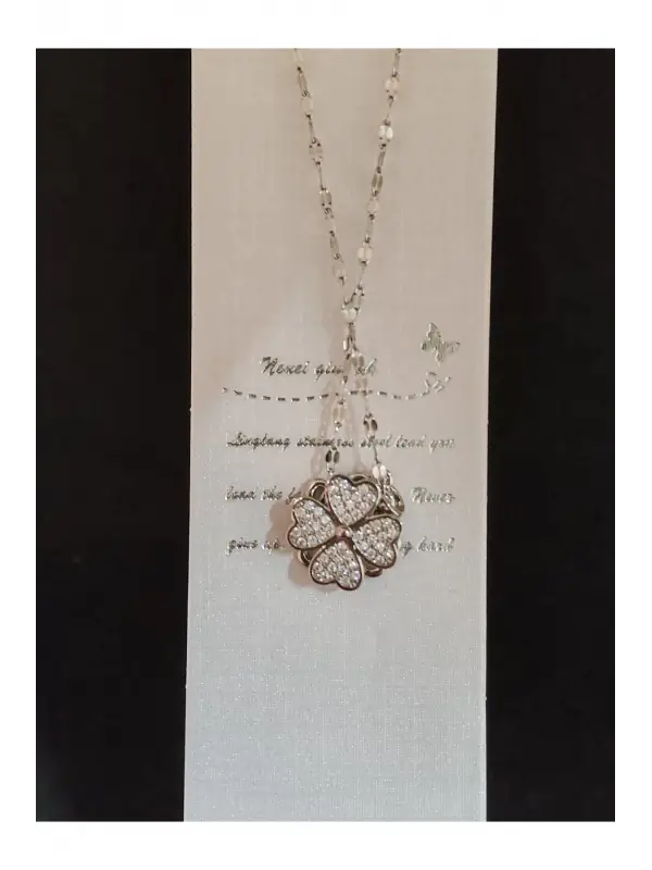 Gümüş Kaplama Özel Dönebilen Yonca Motifli Hediyelik Taşlı Kolye
