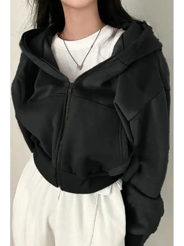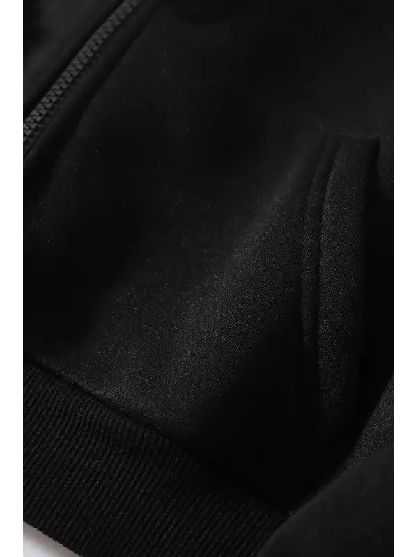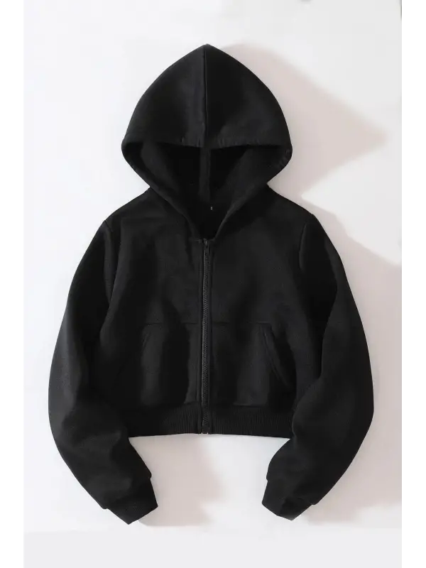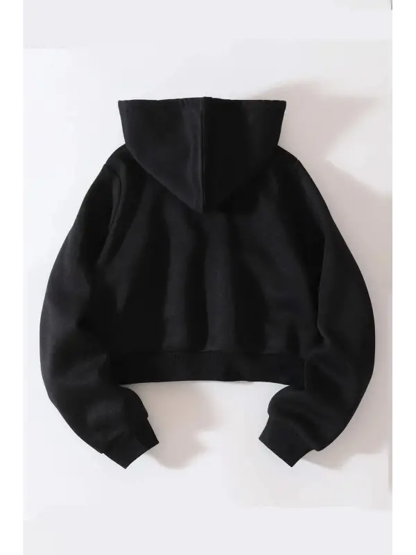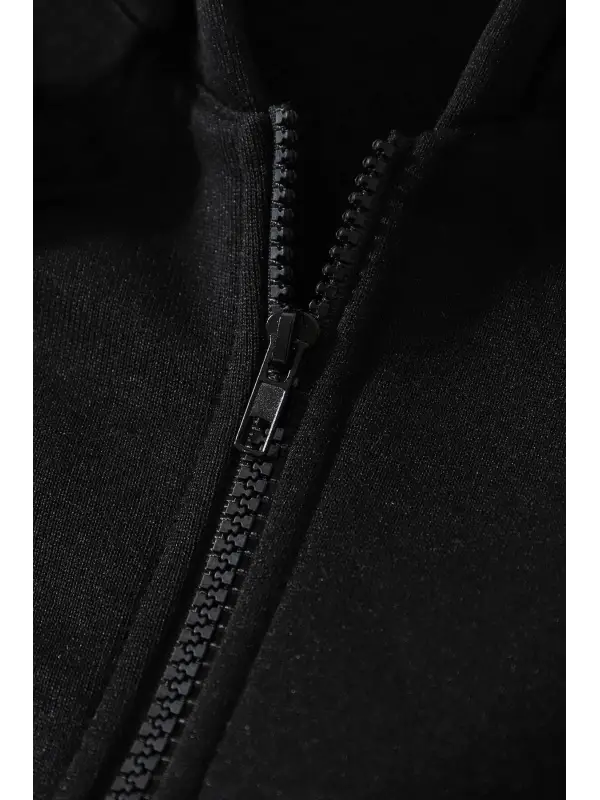 Streetwear Fermuarlı Uzun Kollu Siyah Crop Hırka