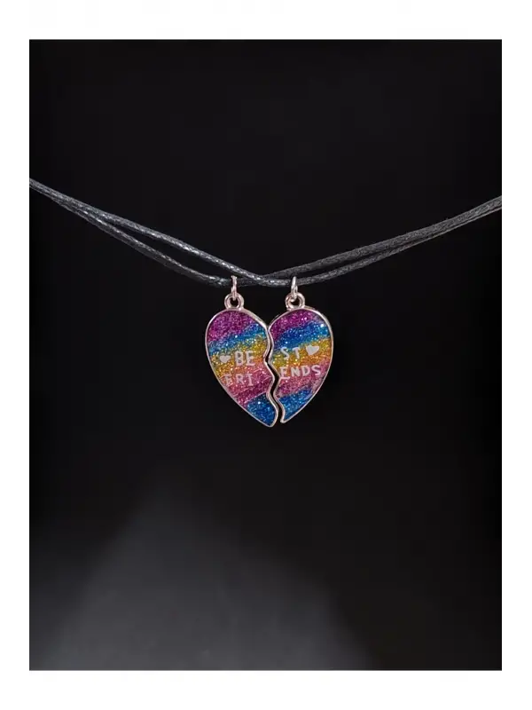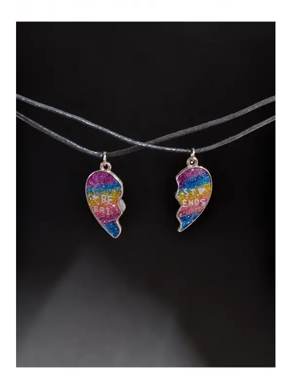 Vintage Gökkuşağı Best Friends Arkadaşlık Mıknatıslı Unisex kili Kolye