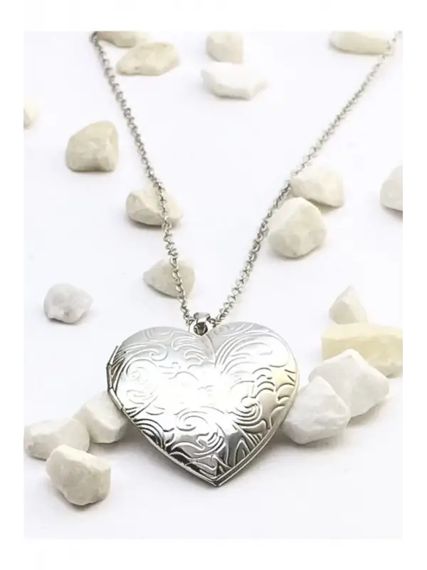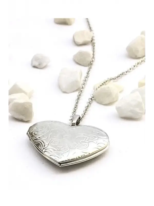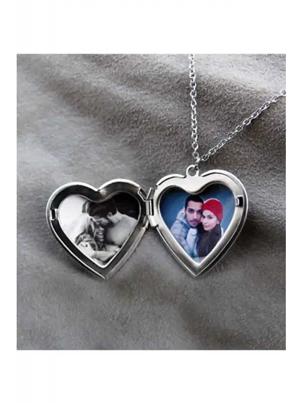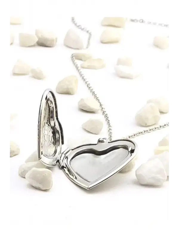 Vintage Gümüş Kaplama El Yapımı Fotoğraflı Içi Açılır, Kalp Biçimli, Kapaklı Kolye