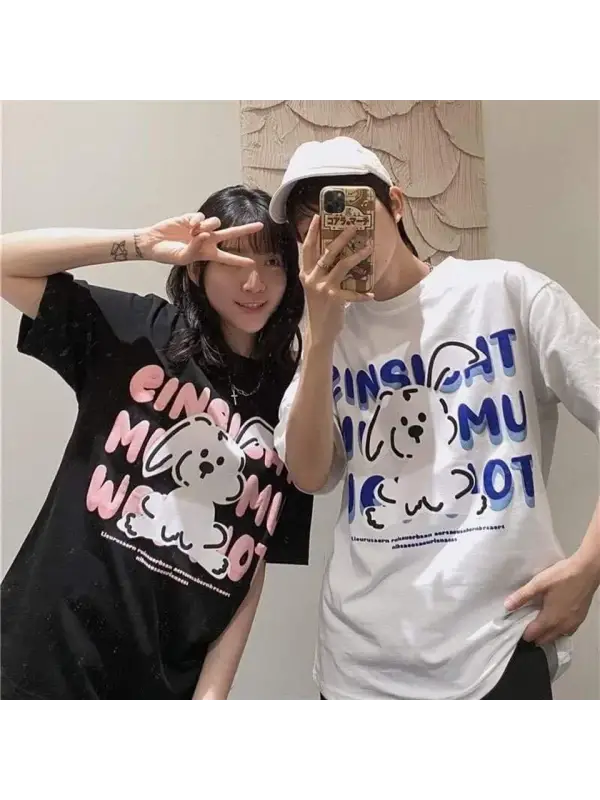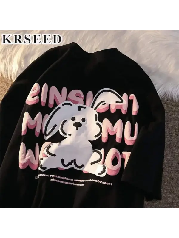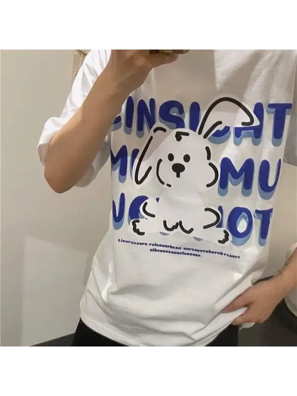 Y2k Cute Cat Beyaz Reglan Kol Oversize T-Shirt