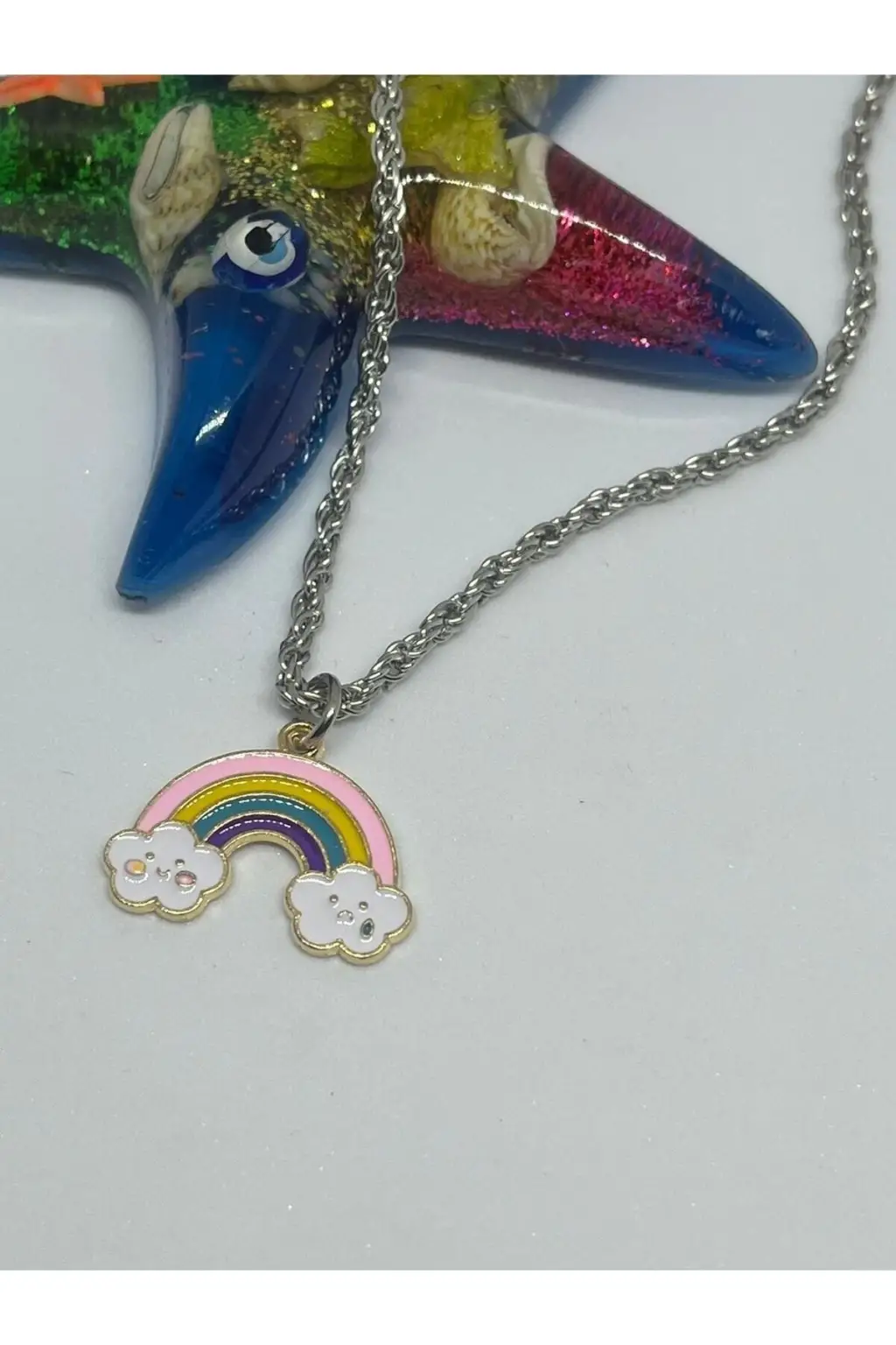 Göz alıcı gökkuşağı renklerinden ilham alan bu kolye, her yaş ve cinsiyete hitap eden unisex bir üründür. Gümüş kaplama paslanmaz çelik malzemeden üretilen kolye, uzun ömürlü ve dayanıklıdır.