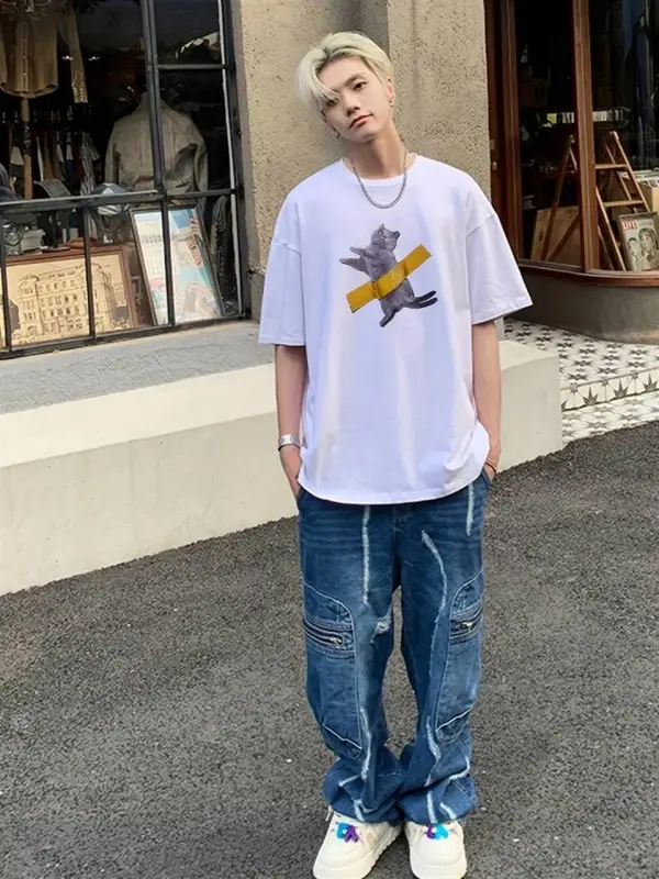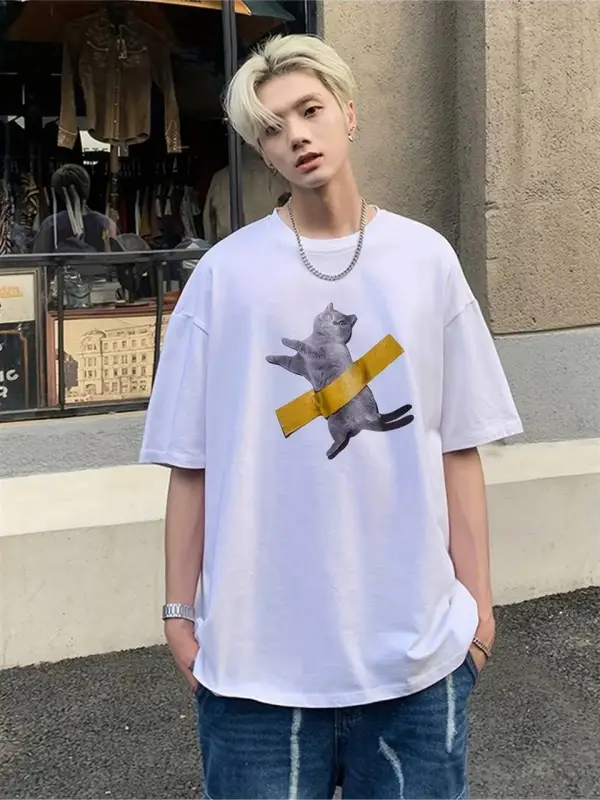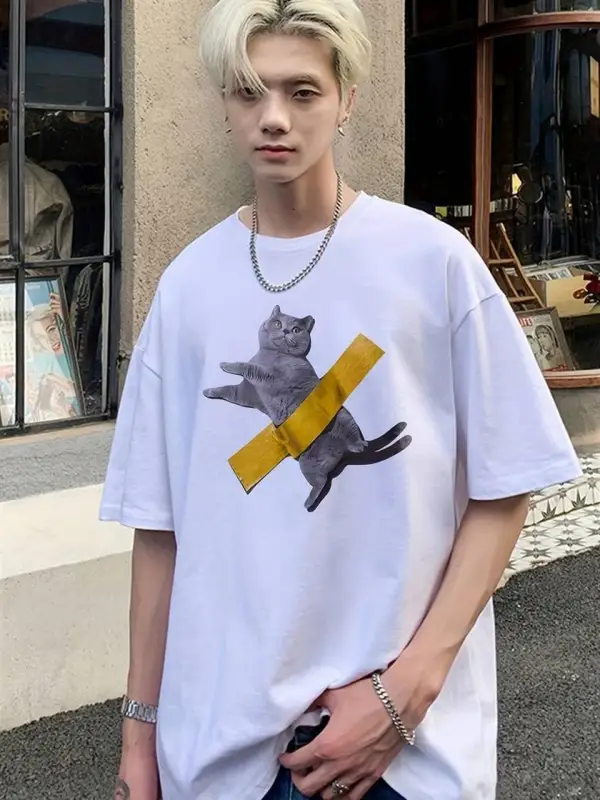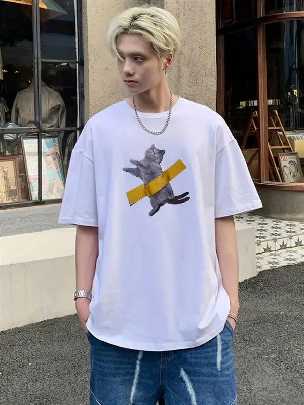 British Shorthair Cute Cat Baskılı Oversize T-Shirt