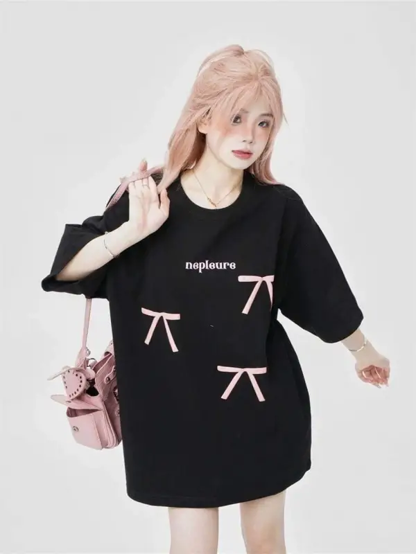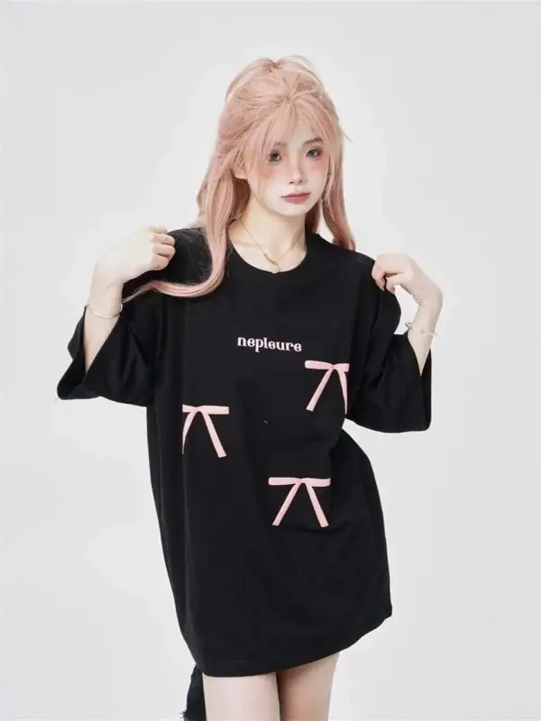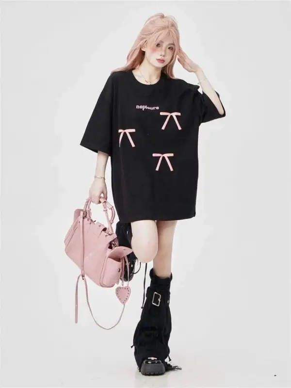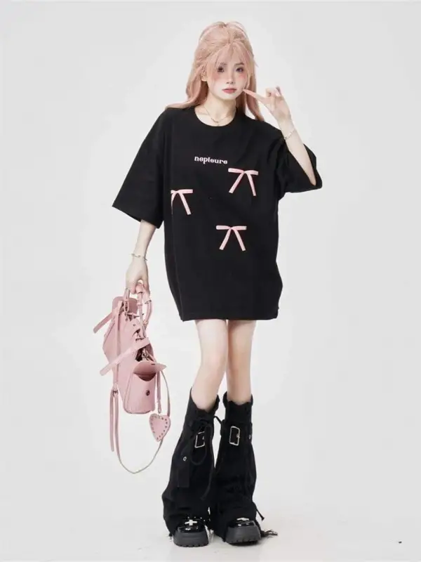 Y2k Sweet Beyaz Reglan Kol Oversize T-Shirt