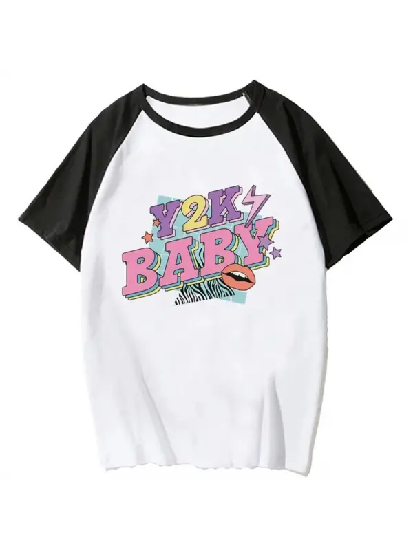 Y2k Baby Beyaz Reglan Kol Oversize T-Shirt