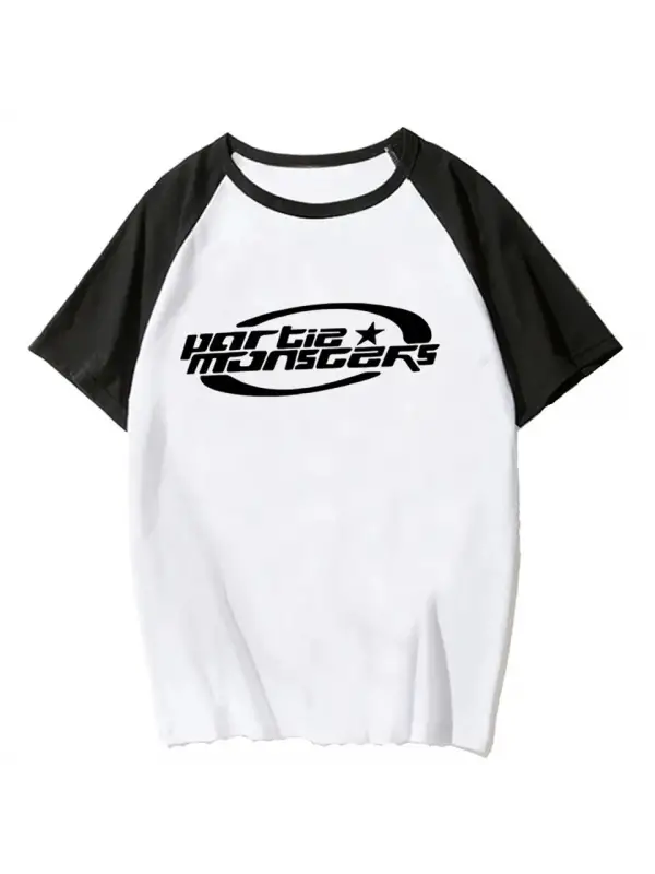 Y2k Partie Monster Beyaz Reglan Kol Oversize T-Shirt