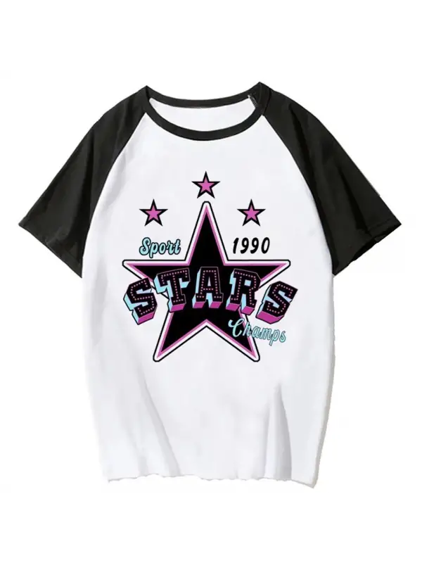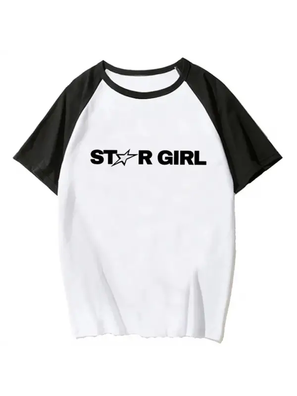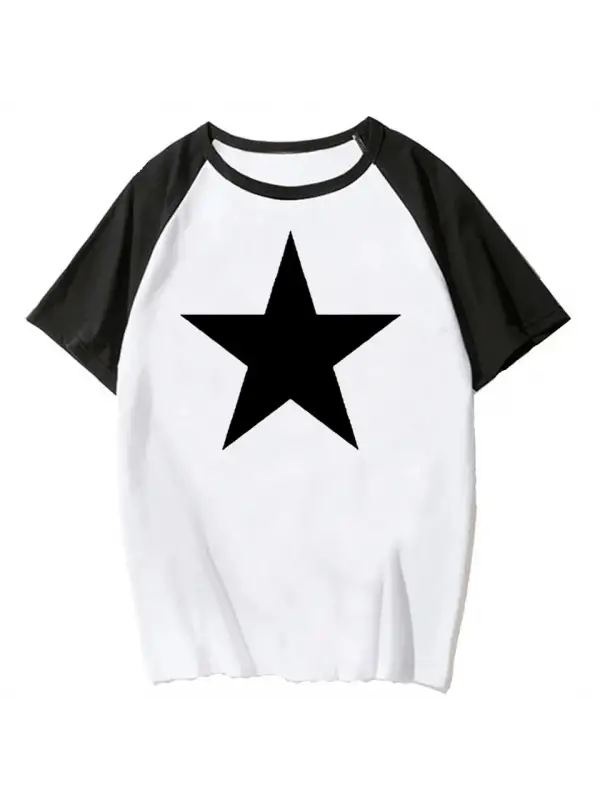 Y2k Star Girl Beyaz Reglan Kol Oversize T-Shirt