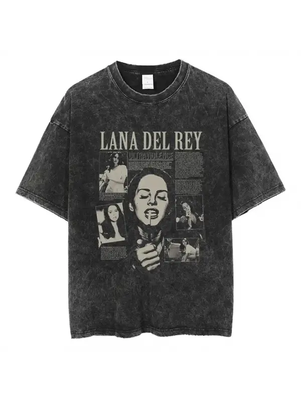 Yıkamalı Lana Del Rey Baskılı Unisex Oversize Vintage T-Shirt