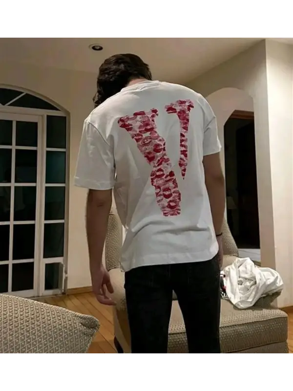 Dijital Baskılı Çizgili Kısa Kollu Crop Bluz