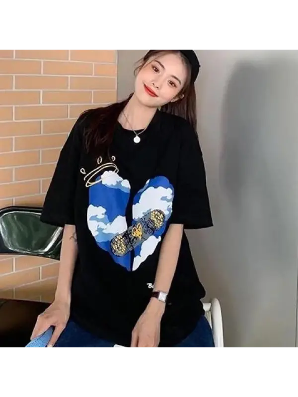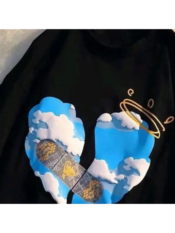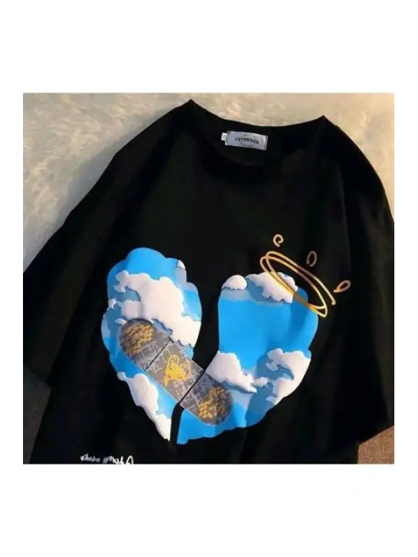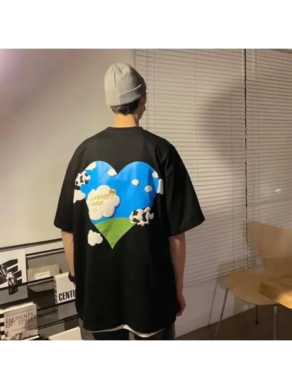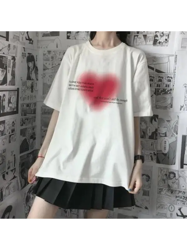 Aesthetic Heart Baskılı Beyaz Unisex Oversize T-Shirt