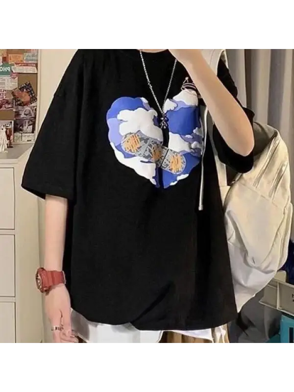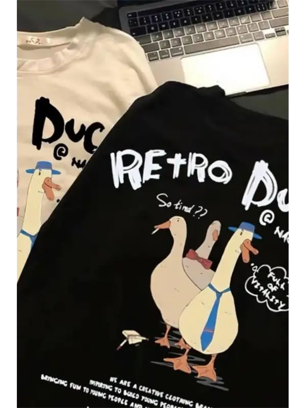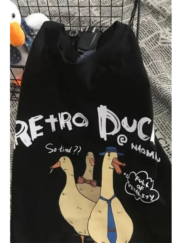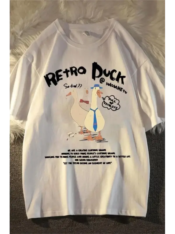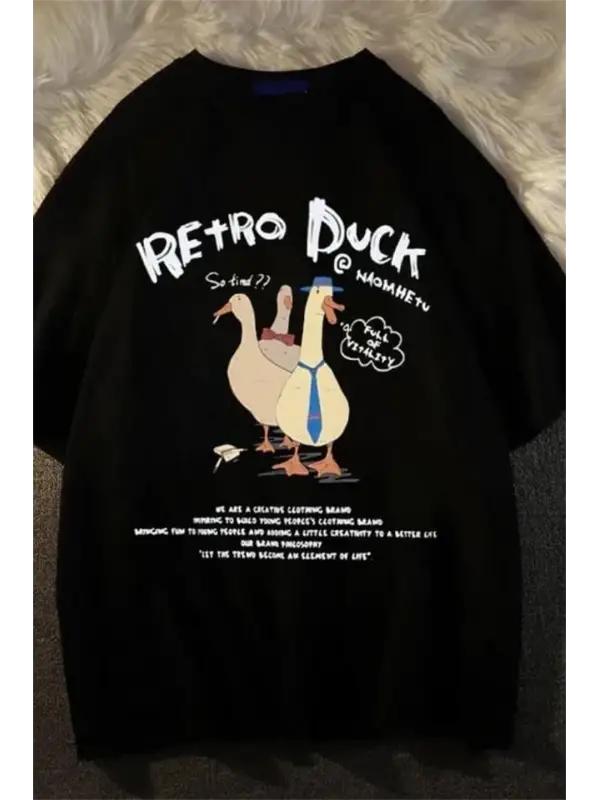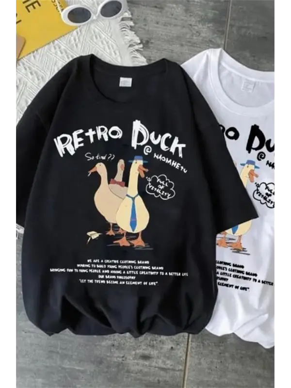 Retro Duck Baskılı Unisex Oversize T-Shirt