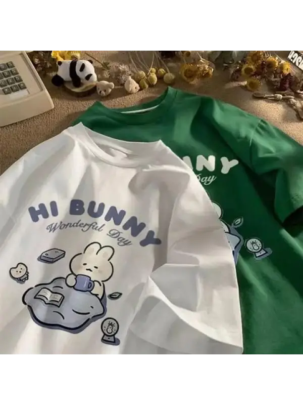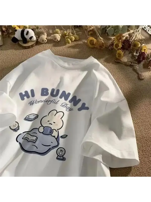 Hi Bunny Baskılı Siyah Unisex Oversize T-Shirt