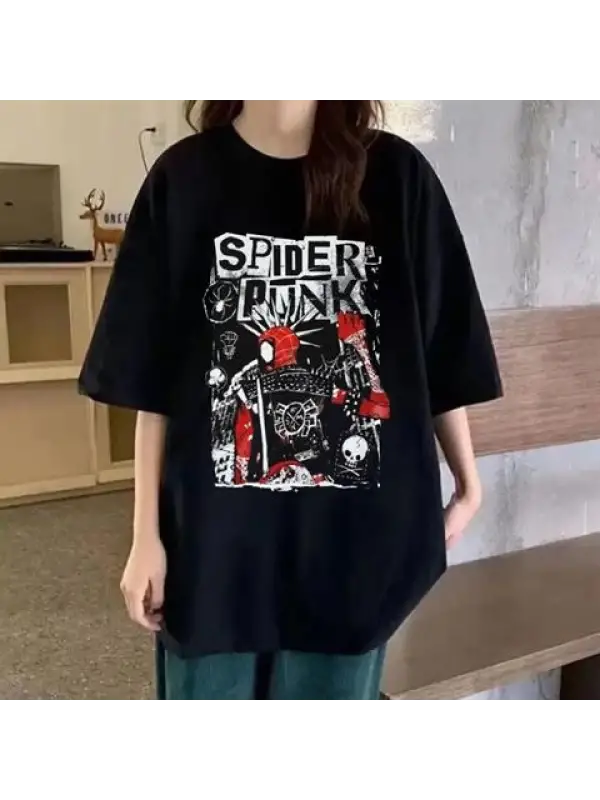 Spider Punk Siyah Unisex Oversize T-Shirt