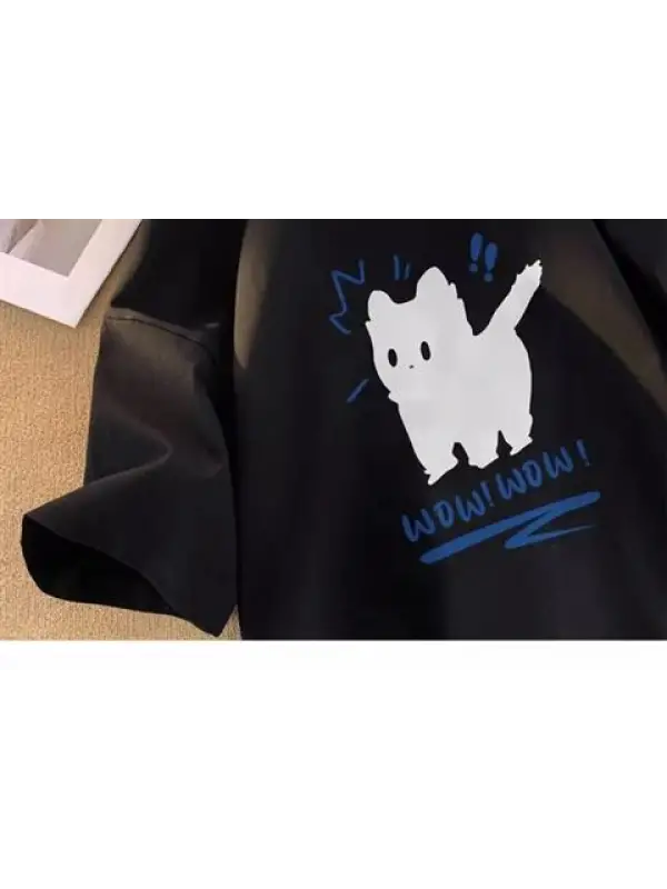 Wow Cat Baskılı Kırmızı Unisex Oversize T-Shirt