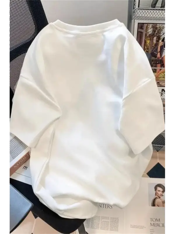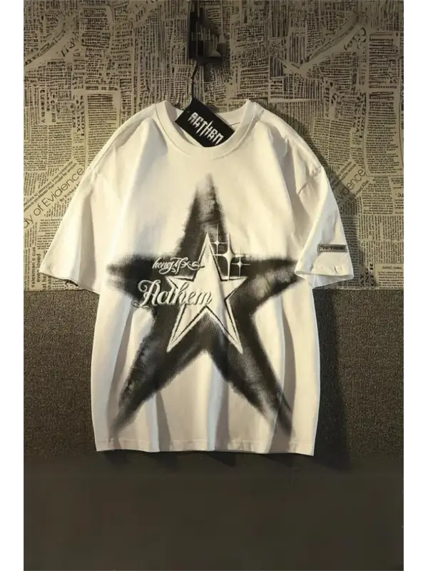 Y2k Star Baskılı Beyaz Unisex Oversize T-Shirt