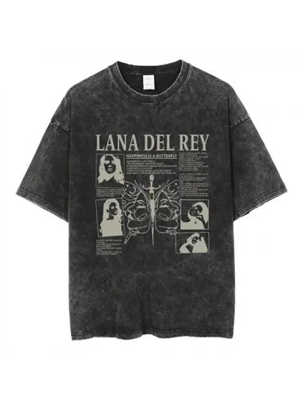 Yıkamalı Streetwear Lana Del Rey Baskılı Unisex Oversize Vintage T-Shirt
