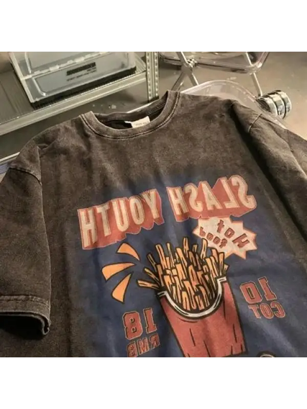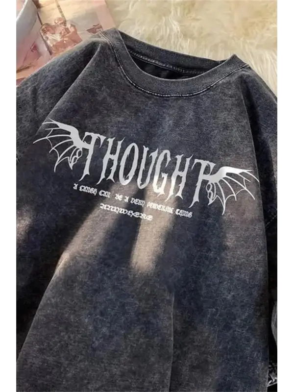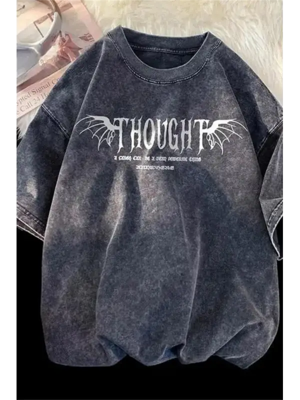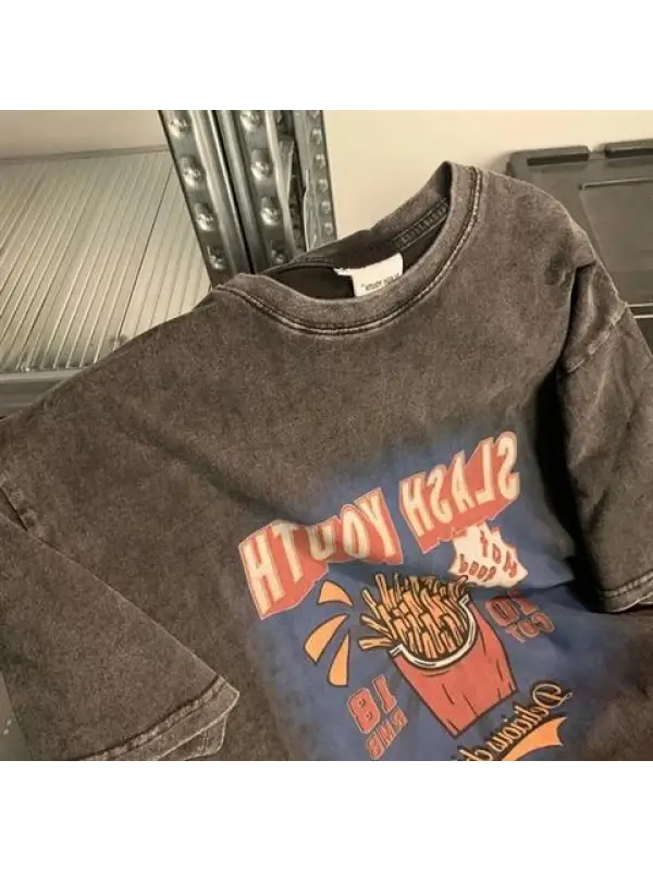 Yıkamalı Streetwear Retro Baskılı Unisex Oversize Vintage T-Shirt