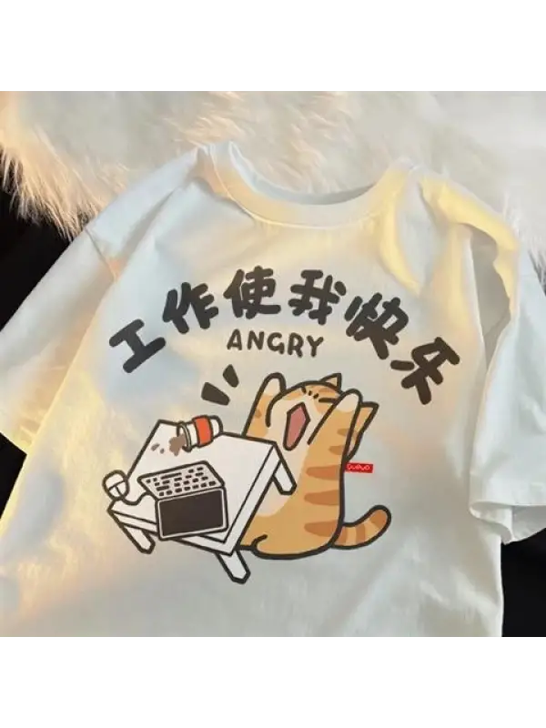 Angry Cat Baskılı Siyah Unisex Oversize T-Shirt