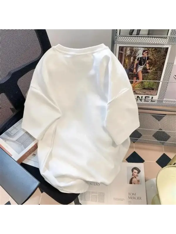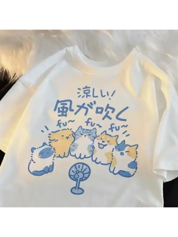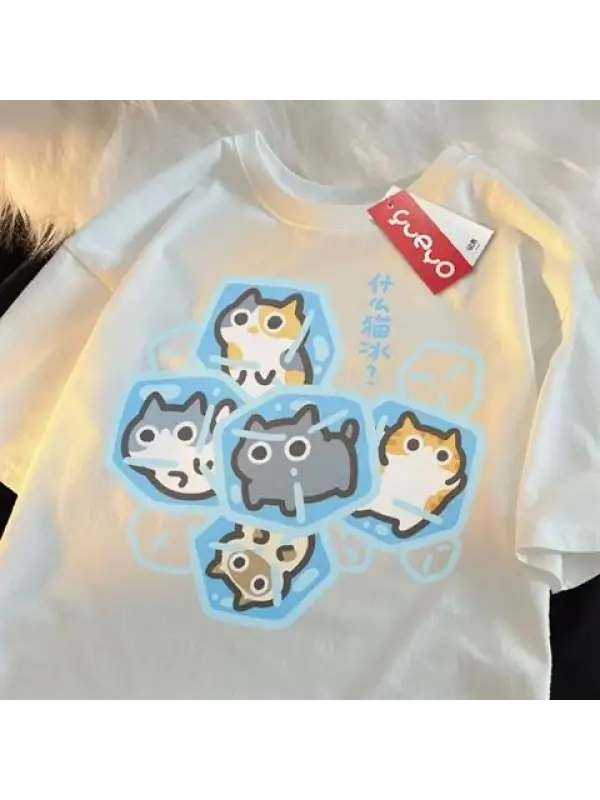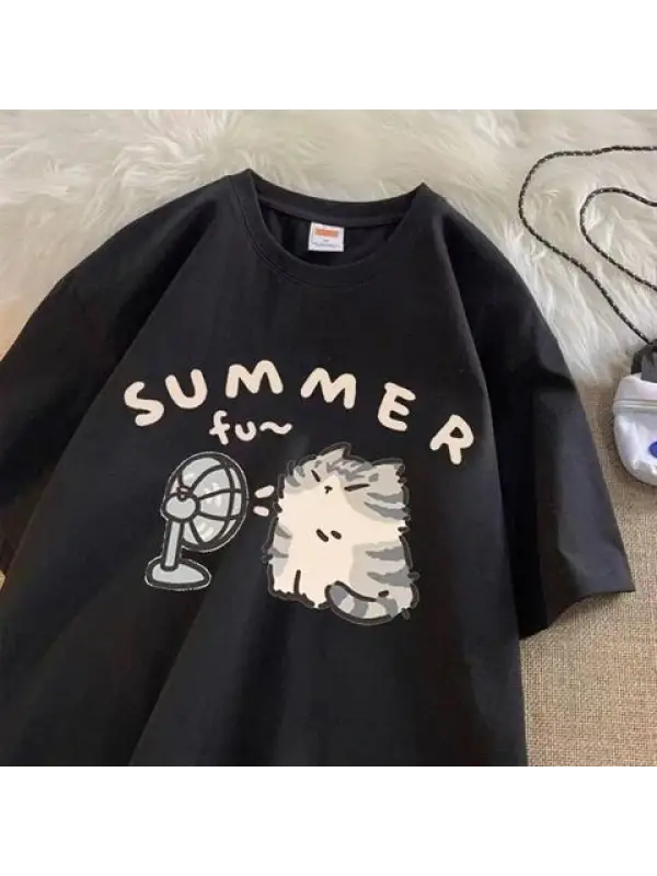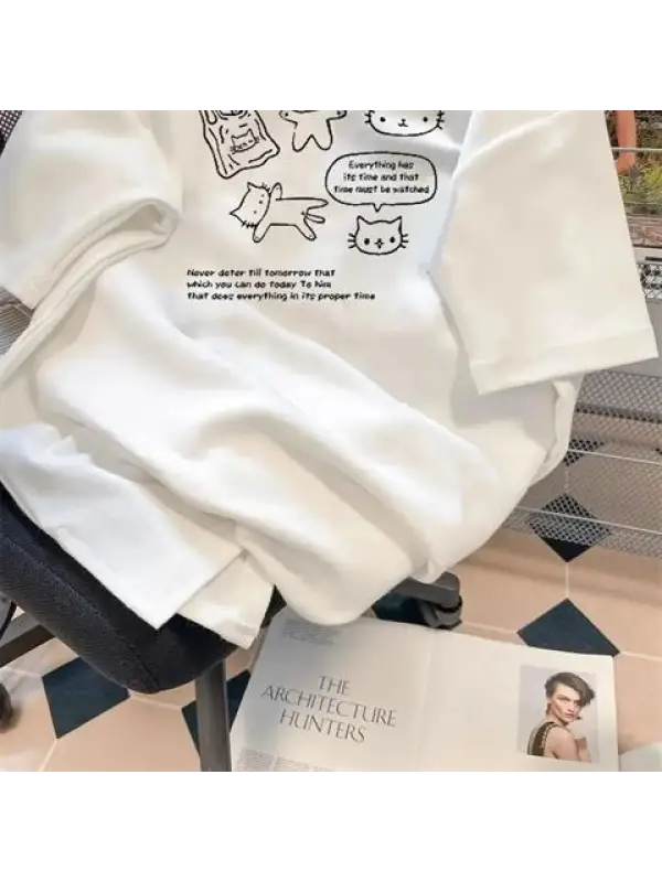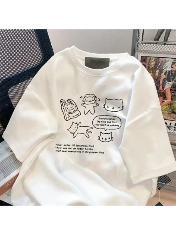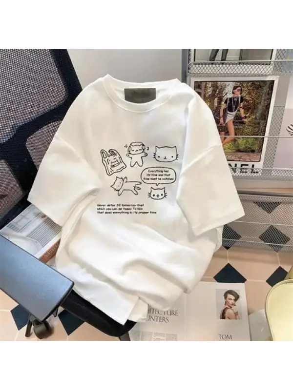 Summer Cat Baskılı Beyaz Unisex Oversize T-Shirt