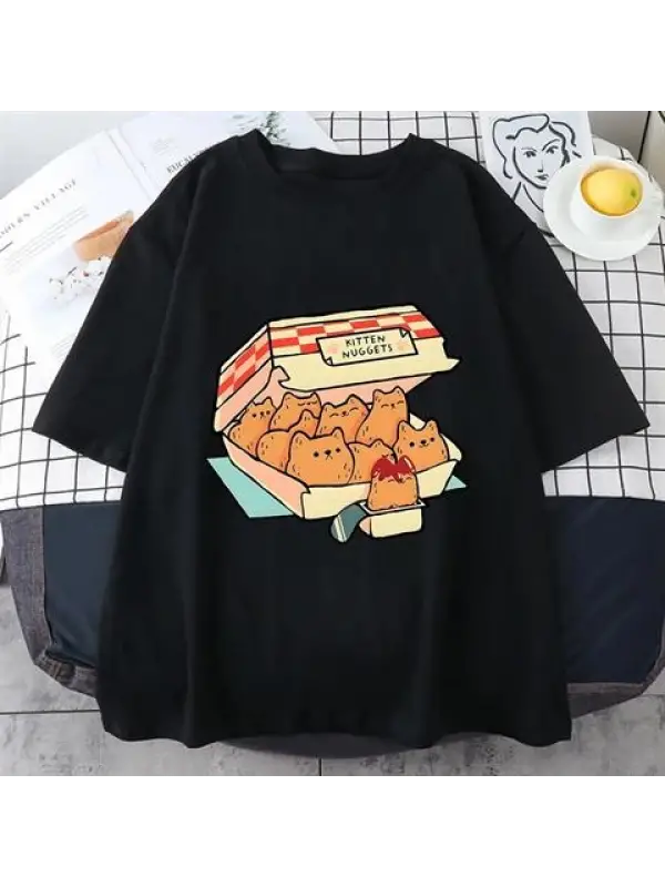 Kitten Nuggets Baskılı Beyaz Unisex Oversize T-Shirt