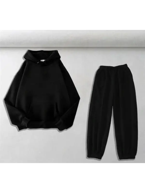 Düz Siyah Oversize Kapüşonlu Sweatshirt & Eşofman Altı Unisex İkili Takım