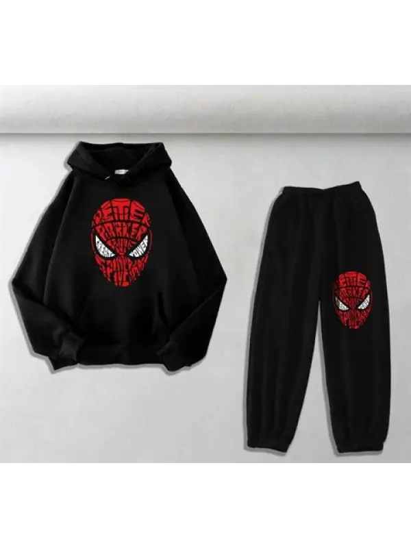 Spider-Man Head Baskılı Siyah Oversize Kapüşonlu Sweatshirt & Eşofman Altı Unisex İkili Takım