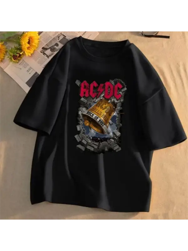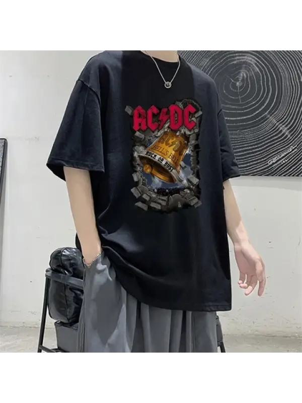 Rock Serisi AC/DC Baskılı Siyah Unisex Oversize T-Shirt