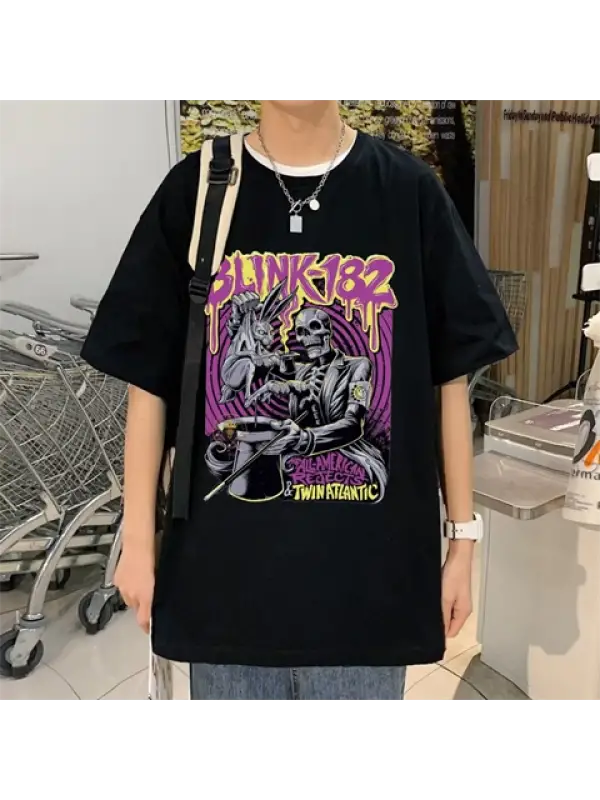 Rock Serisi Blink 182 Baskılı Siyah Unisex Oversize T-Shirt