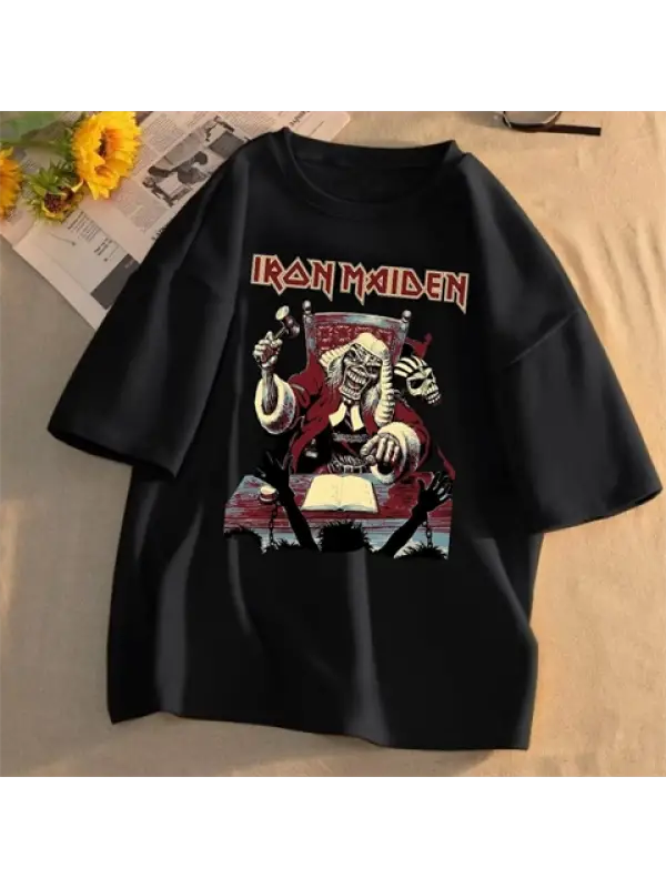 Rock Serisi Iron Maiden Logo Baskılı Siyah Unisex Oversize T-Shirt