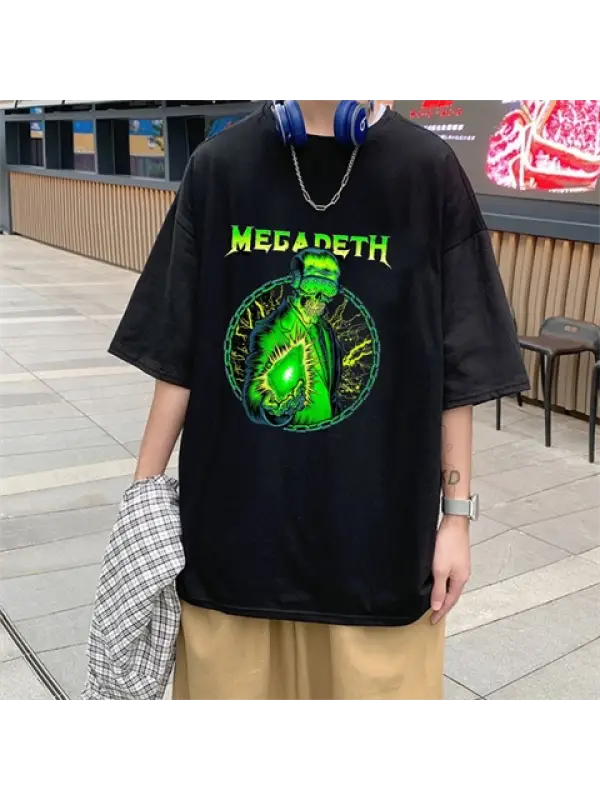 Rock Serisi Megadeth Baskılı Siyah Unisex Oversize T-Shirt