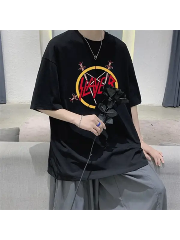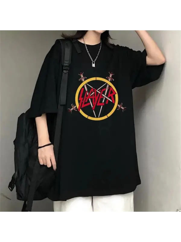 Rock Serisi Slayer Baskılı Siyah Unisex Oversize T-Shirt