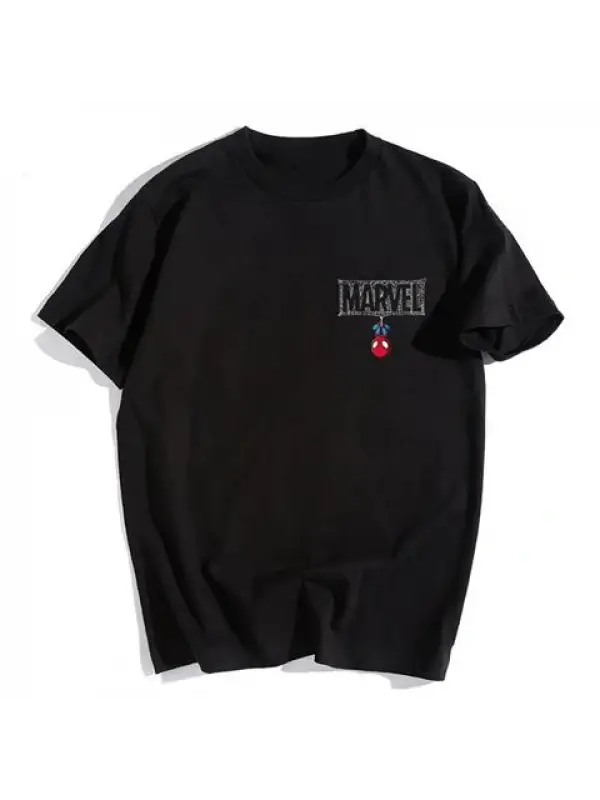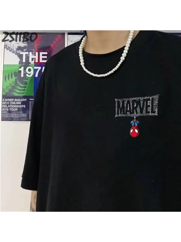 Mini Spider-Man Baskılı Siyah Unisex Oversize T-Shirt