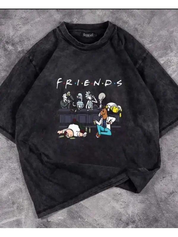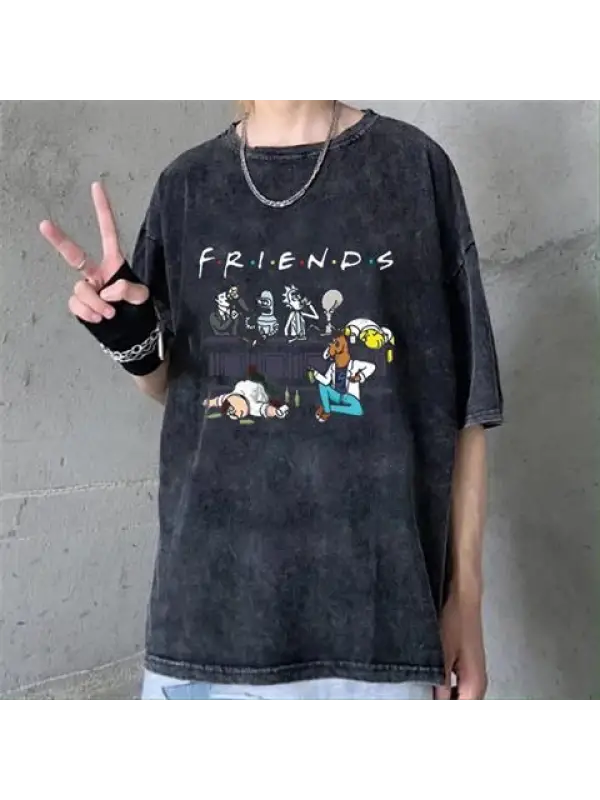 Yıkamalı Friends Baskılı Unisex Oversize Vintage Eskitme T-Shirt